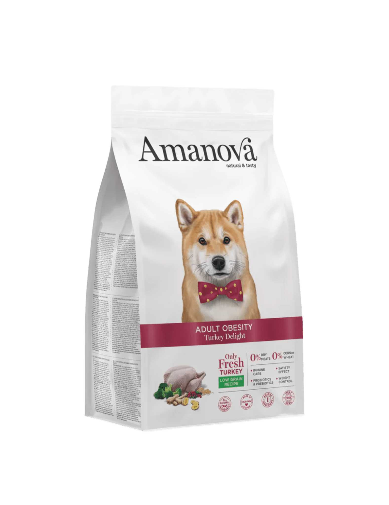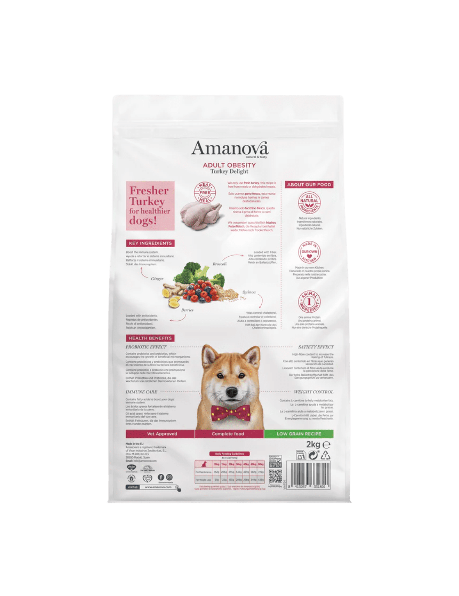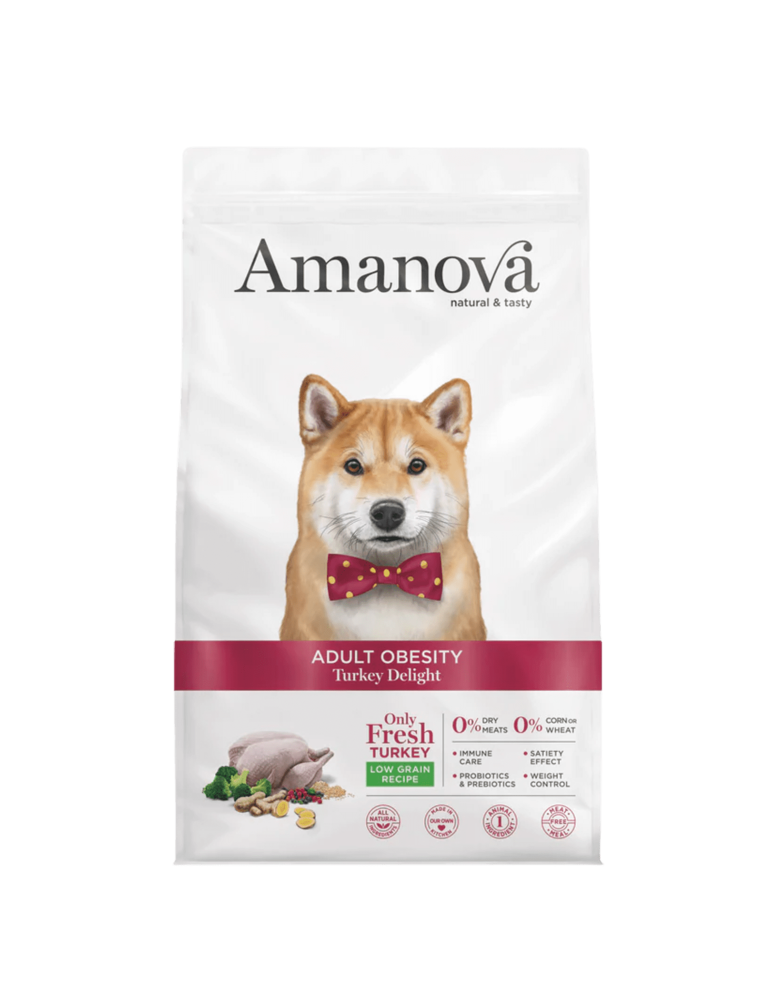 Pavo preparado en fresco 45% (usamos 67 kg de pavo preparado en fresco para producir 100 kg de nuestro producto), guisantes verdesenteros, prote na de patata, proteína de guisantes, arroz integral, tapioca, harina de algarroba, ligno celulosa, levaduras (Saccharomyces cerevisiae), hidrolizado de hígado de pavo, minerales, fibra de manzana, cebada integral, semillas de lino(fuente natural de ácidos grasos ω3), avena integral, aceite de pescado (protegido con tocoferoles naturales), glucosamina 1400 mg/kg, calabaza deshidratada, kale deshidratada, krill del antártico, alga kelp, spirulina, achicoria (fuente de FOS) 1000mg/kg, quínoa 1000 mg/kg, brócoli deshidratado 1000 mg/kg, arándanos rojos1000 mg/kg, arándanos azules 1000 mg/kg, jengibre 1000 mg/kg, condroitina 1000 mg/kg, pared celular hidrolizada de levaduras (fuente de MOS) 1000 mg/kg, romero, yucca schidigera.