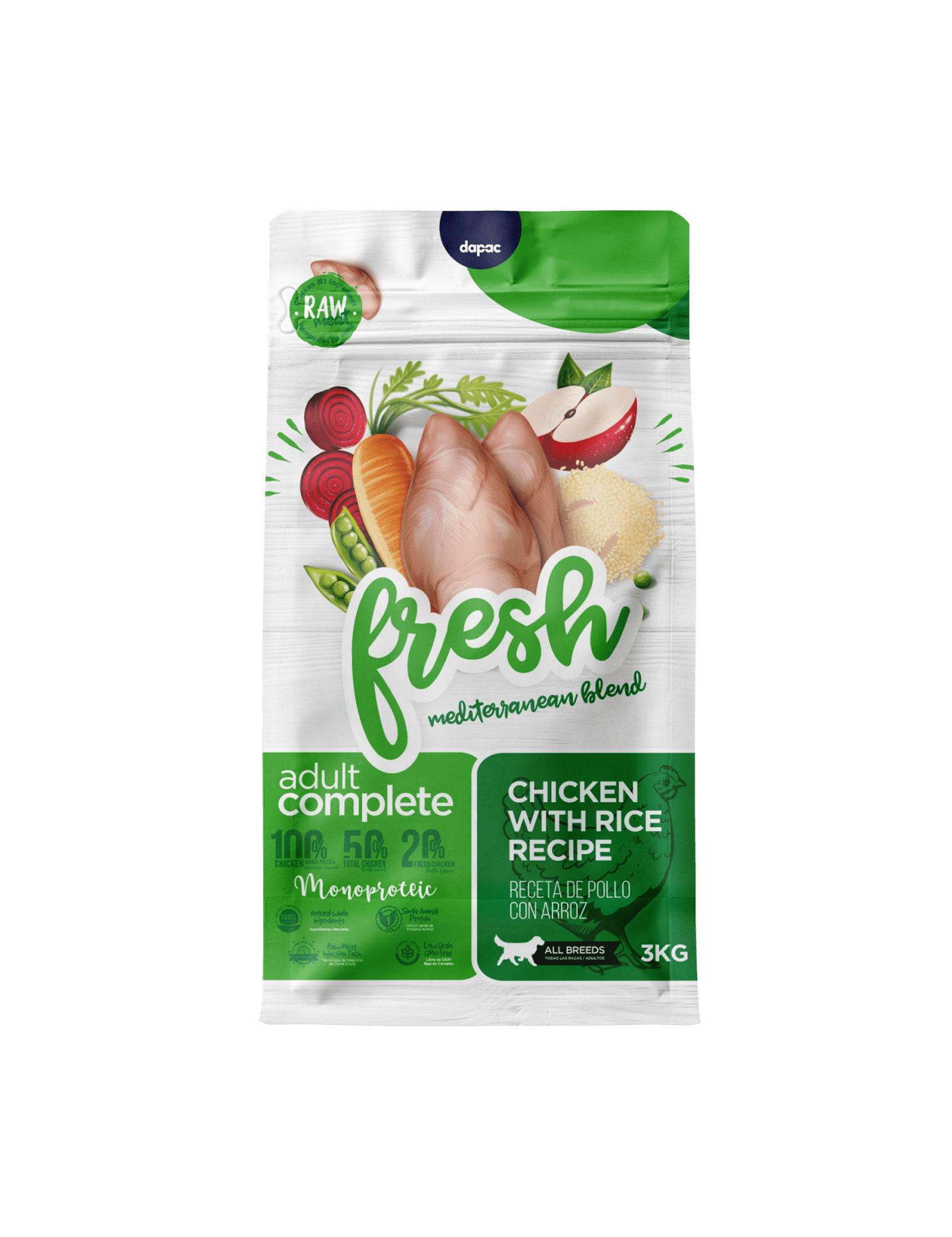 Como ocurre con el resto de variedades de Fresh Mediterranean Blend es un pienso hipoalergénico y monoproteico, basado en receta mediterránea.