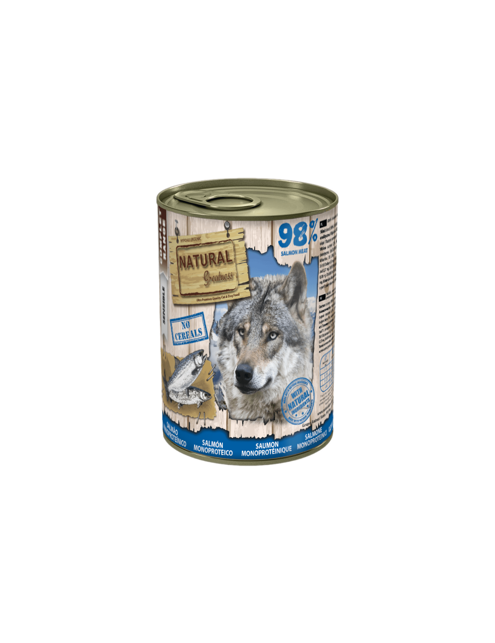 Composición: Salmón (98%), aceites y grasas vegetales.
