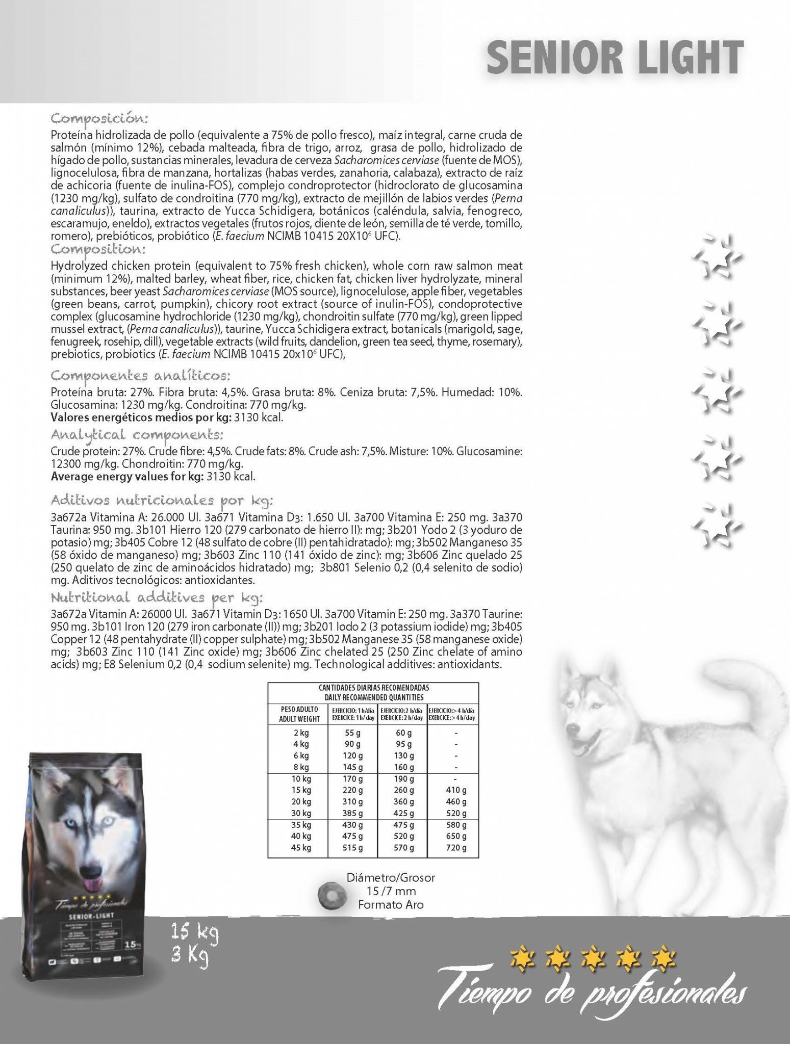 inulina-FOS), complejo condroprotector (hidroclorato de glucosamina, sulfato de condroitina, extracto dé mejillón de labios verdes (Perna canaliculus), taurina, extracto de Yucca Schidigera, botánicos(caléndula, salvia, fenogreco, escaramujo, eneldo), extractos vegetales (frutos rojos, diente de león,