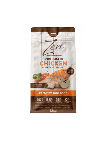Pollo fresco 40%. Proteína deshidratada de ave 25%. Arroz integral. Guisantes. Hidrolizado de hígado de pollo 5%. Aceite de pollo. Pulpa de manzana. Harina de pescado. Semillas de linaza. Minerales. Levaduras. Harina de algarroba. Aceite de pescado. Huevos. Zanahoria deshidratada (0,1%, equivalente a 1% zanahorias). Manzanilla. Inulina (fuente de FOS). Manano-oligosacáridos (MOS). Glucosamina 900 mg/kg. Brócoli deshidratado (0,05%, equivalente a 0,5% brócoli). Tomate deshidratado (0,05%, equivalente a 0,5% tomates). Extractos de cítricos. Condroitina 200 mg/kg. Yucca schidigera. Arándanos deshidratados (0,01%, equivalente a 0,1% arándanos).